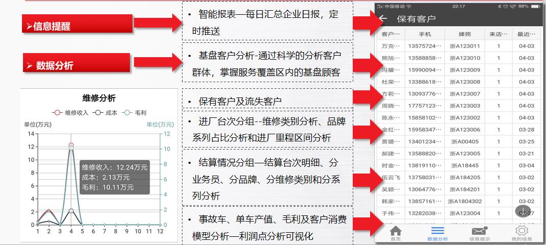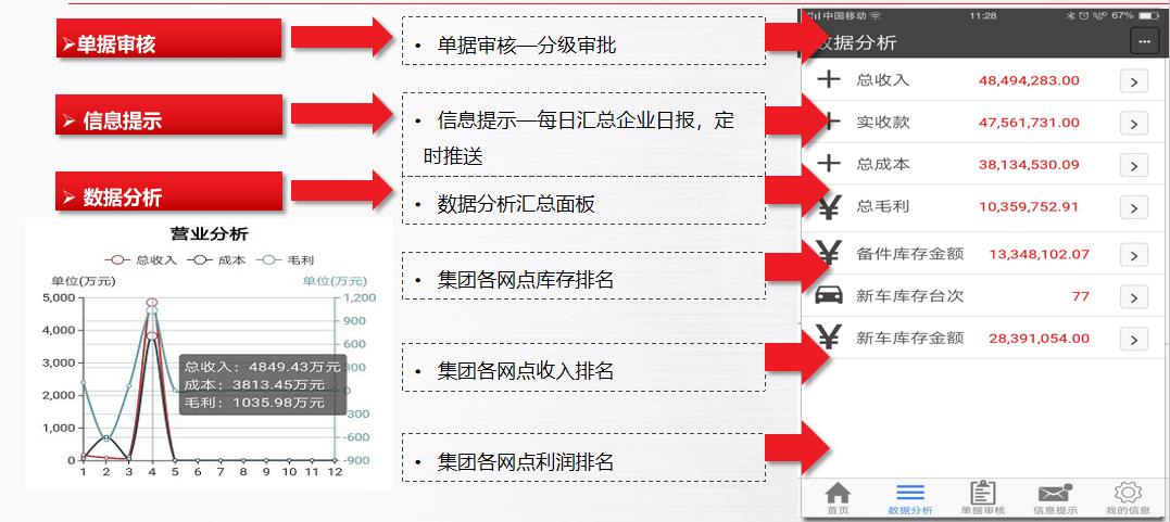 產(chǎn)品以結(jié)果數(shù)據(jù)為導(dǎo)向,基于啟擎ADMS平臺框架下,無縫對接各業(yè)務(wù)模塊,為管理層提供一體化運(yùn)營分析為宗旨的便捷性APP平臺。產(chǎn)品包含整車銷售版,售后維修版、門店綜合版和集團(tuán)中央管控版,適用于蘋果IOS和安卓Android。