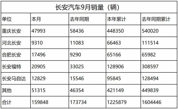 此前,長(zhǎng)安汽車曾發(fā)布快報(bào)數(shù)據(jù)顯示,企業(yè)9月銷量約為16萬輛,同比下降8%;1-9月累計(jì)銷量約122.6萬輛,同比下降23.6%。其中,長(zhǎng)安品牌9月銷量為74799輛,與去年同期相比下降5%;1-9月銷量為579979輛,與去年同期相比下降19%;長(zhǎng)安福特和長(zhǎng)安馬自達(dá)9月銷量分別為20905輛和12829輛,與去年同期相比分別下降36.7%和17.5%。