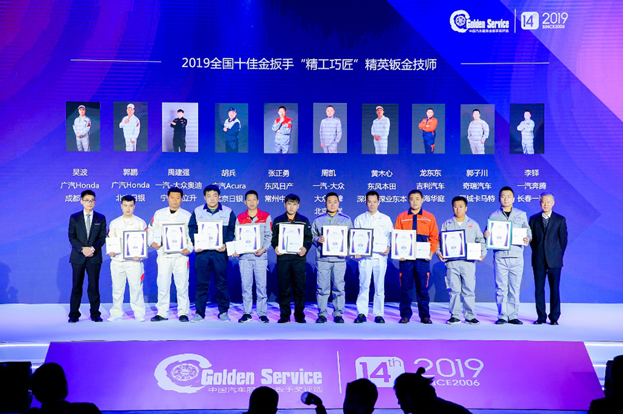 經(jīng)銷商體系的發(fā)展,也是主辦方持續(xù)關(guān)注的領(lǐng)域。繼成功舉辦2017年全國(guó)精英技師評(píng)選、2018年服務(wù)顧問評(píng)選之后,今年主辦方將鈑金技師納入到針對(duì)經(jīng)銷商服務(wù)崗位的評(píng)選體系中,并策劃開展了評(píng)選。此次,共有來自13個(gè)獲獎(jiǎng)品牌的全國(guó)60名優(yōu)秀鈑金技師參與評(píng)選,他們歷經(jīng)初選推薦、線上投票、在線答題、鈑金實(shí)操作業(yè)、專家評(píng)審及評(píng)委會(huì)終審等多個(gè)環(huán)節(jié),層層選拔,嚴(yán)格考驗(yàn),最終全國(guó)十強(qiáng)精英脫穎而出,榮獲“2019全國(guó)十佳金扳手‘精工巧匠’精英鈑金技師”稱號(hào)!