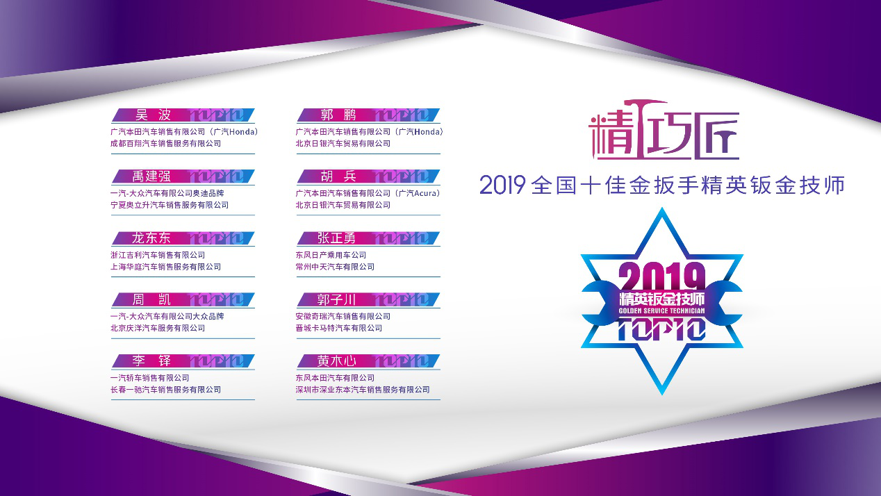 2019全國(guó)十佳金扳手“精工巧匠”精英鈑金技師獲獎(jiǎng)名單(排名順序不分先后)